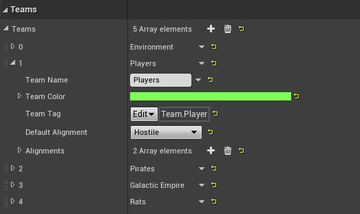 The result of displaying this in the editor: (“Environment”, “Players”, “Pirates”, etc. are the TeamNames now embedded and visible even with the struct view collapsed. Without this specifier, the UI would be blank and you need to expand each element.