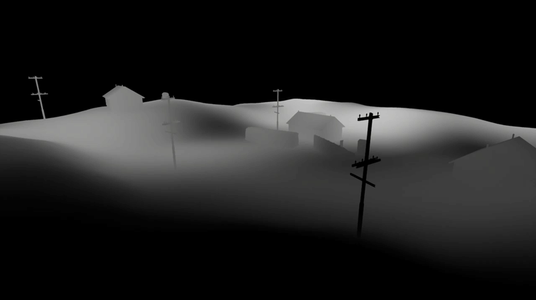 Now finally I wanted to make the effect slightly more dynamic, by adding clouds. These are not actual volumetric clouds, as that is more expensive and complex to calculate, instead it’s a 3D Perlin noise texture that pans through world-space and is blended into the fog material. The effect doesn’t hold up too well at close range, so it’s only added on the distant pixels of the scene where it looks more believable as ‘volumetric’ clouds.